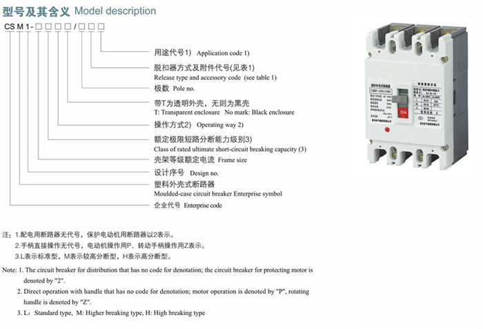 CSM1(CM1) 系列斷路器主要用于交流50Hz,額定電壓690V、400V及以下,額定電流630A及以下的配電網(wǎng)絡(luò)中作為分配電能和保護(hù)線路及電源設(shè)備的過載、欠電壓和短路,殼架等級額定電流400A及以下的斷路器也可作為電動機(jī)的過載、欠電壓和短路保護(hù)。具有隔離功能,適用于建筑行業(yè)分配電。在正常條件下可作為線路的不頻繁轉(zhuǎn)換和電動機(jī)的不頻繁起動之用。