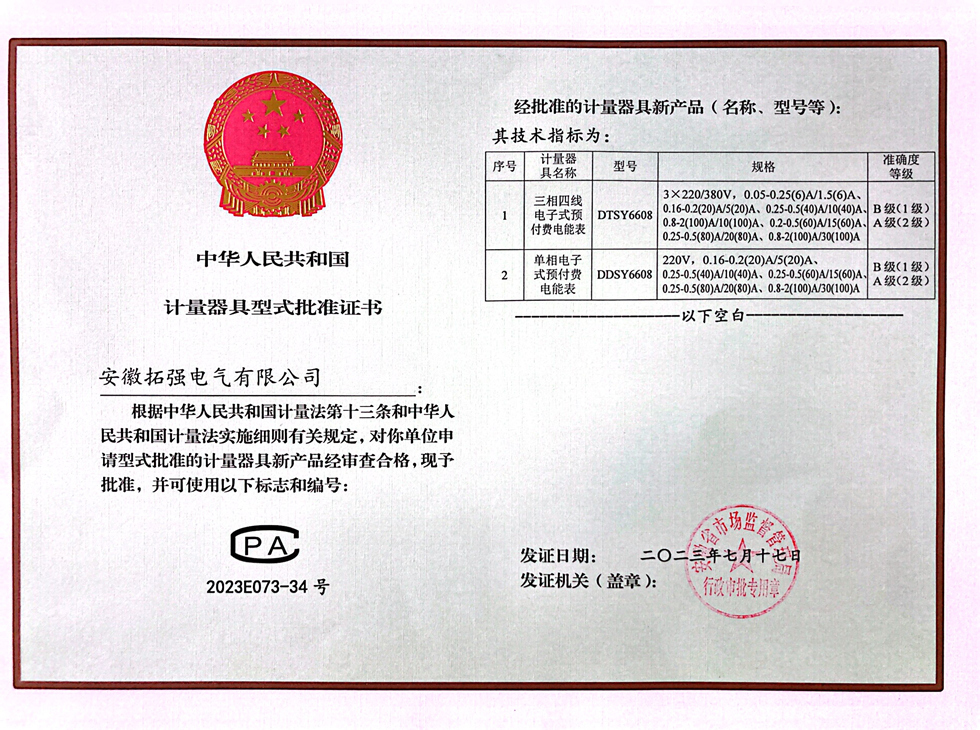 安徽拓強電氣有限公司是一家以技術創(chuàng)新為核心競爭力,致力于電力系統(tǒng)智能化產品集研發(fā)、制造、銷售和技術服務為一體的高新技術企業(yè)。拓強擁有先進的計量檢測設備,科學生產工藝,技術力量雄厚,現已開發(fā)生產的產品有4G智能電表、 WiFi電表、導軌式電表、4G智能水表、NB-iot物聯網智能水表、NB-iot物聯網智能電表、485智能電表、485/mbus智能水表、光電直讀遠傳水表、藍牙智能電表、藍牙智能水表、lora無線智能水表、峰谷平階梯多費率電表、一卡通水電表、多功能數顯儀表等產品,產品性能可靠,技術先進,暢銷國內外,得到了廣大用戶的諸多好評。