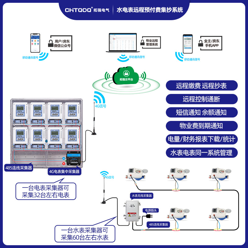 拓強(qiáng)物聯(lián)網(wǎng)智能水電表遠(yuǎn)程管理系統(tǒng)是用于物業(yè)小區(qū)、大型商場(chǎng)、大型購(gòu)物中心、公寓、寫字樓、工業(yè)園區(qū)、宿舍、工廠等場(chǎng)所收取水電費(fèi)、電能計(jì)量統(tǒng)計(jì)分析的智能化管理系統(tǒng)。它以全自動(dòng)的遠(yuǎn)程抄表方式取代了傳統(tǒng)的人工抄表方式,解決了人工抄表效率低、出錯(cuò)高、收費(fèi)難等問(wèn)題。系統(tǒng)是建立在網(wǎng)絡(luò)普及應(yīng)用、物聯(lián)網(wǎng)技術(shù)成熟的環(huán)境基礎(chǔ)上,運(yùn)用先進(jìn)的云臺(tái)系統(tǒng)架構(gòu),使系統(tǒng)具備遠(yuǎn)程調(diào)試、遠(yuǎn)程維護(hù)以及與外部第三方軟件的數(shù)據(jù)交互功能。