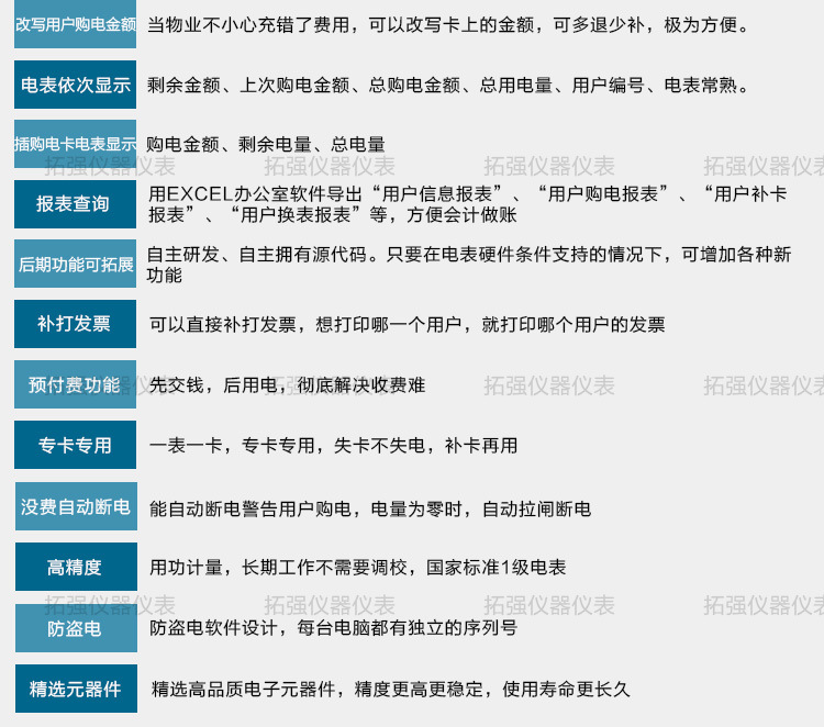 主要特點(diǎn):應(yīng)用計(jì)算機(jī)管理,先購電后用電;在額定電流范圍內(nèi)能限制最大使用功率(由供電部門限定);一表一卡,??▽S?,失卡不失電,補(bǔ)卡再用;電卡能雙向傳遞數(shù)據(jù),能自動(dòng)斷電告警用戶購電;電量為零時(shí),自動(dòng)拉閘斷電;并具有一定的防竊電軟件設(shè)計(jì)等。